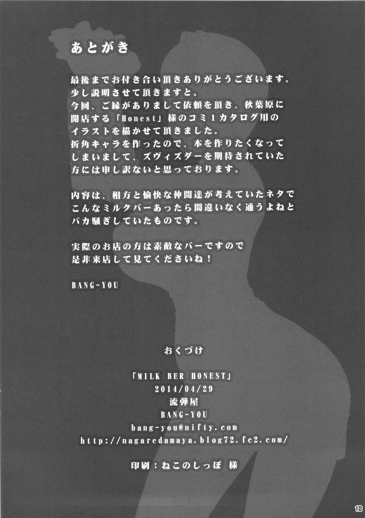 (COMIC1☆8) [Nagaredamaya (BANG-YOU)] MILK BAR HONEST