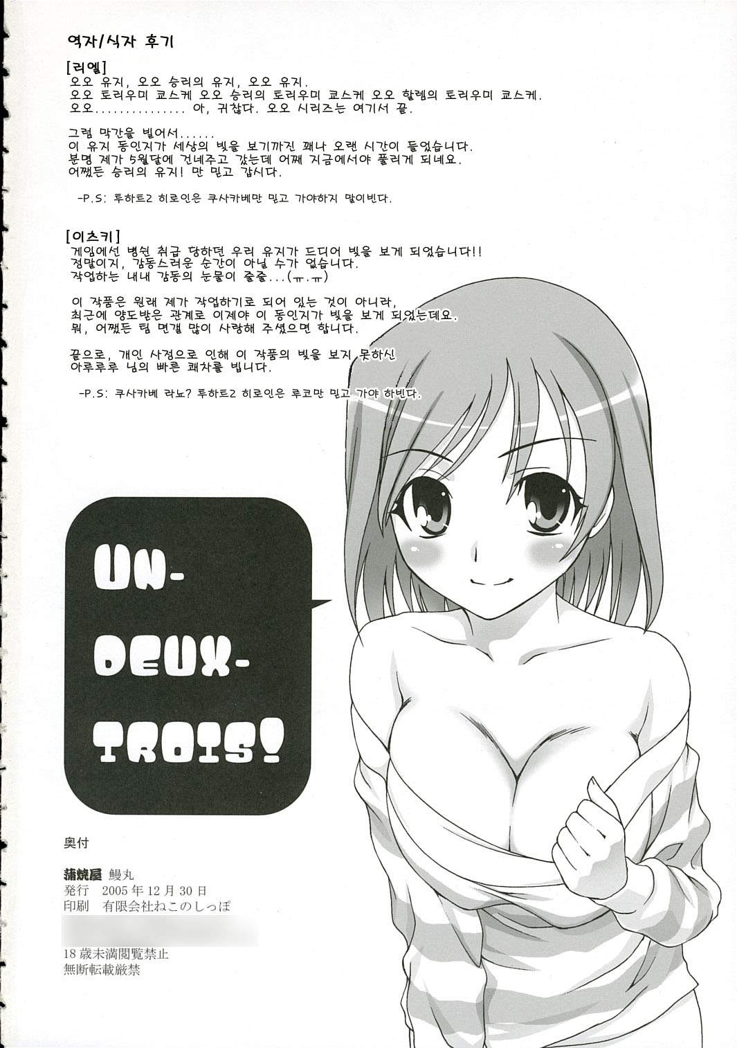 (C69) [Kabayakiya (Unagimaru)] UN-DEUX-TROIS (To Heart 2) [Korean]