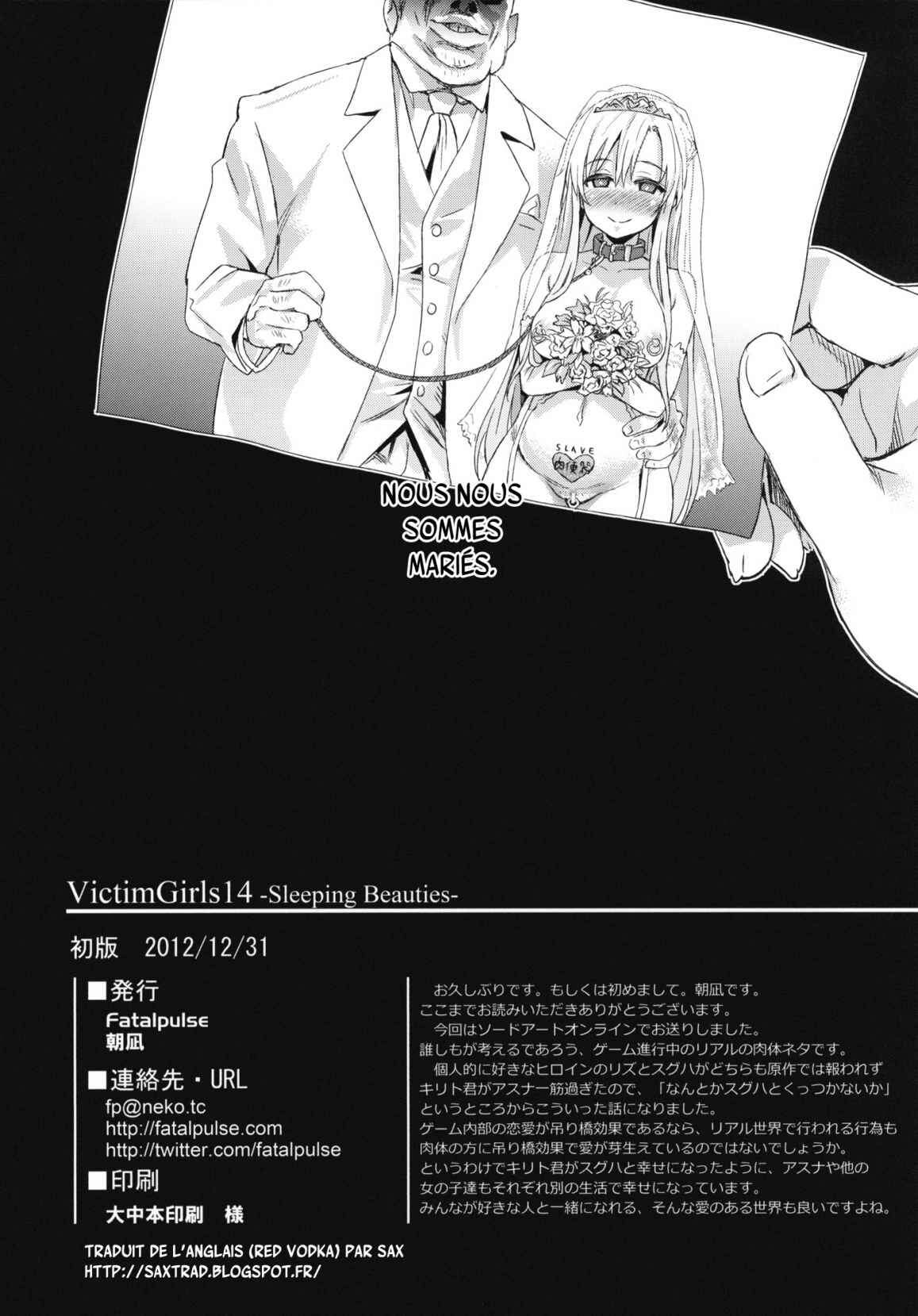 (C83) [Fatalpulse (Asanagi)] Victim Girls 14 -Sleeping Beauties- (Sword Art Online) [French] {SAXtrad}