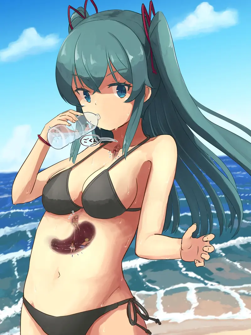 [Parins] 縮小した海水浴客をお水と一緒に飲み込んじゃう女の子
