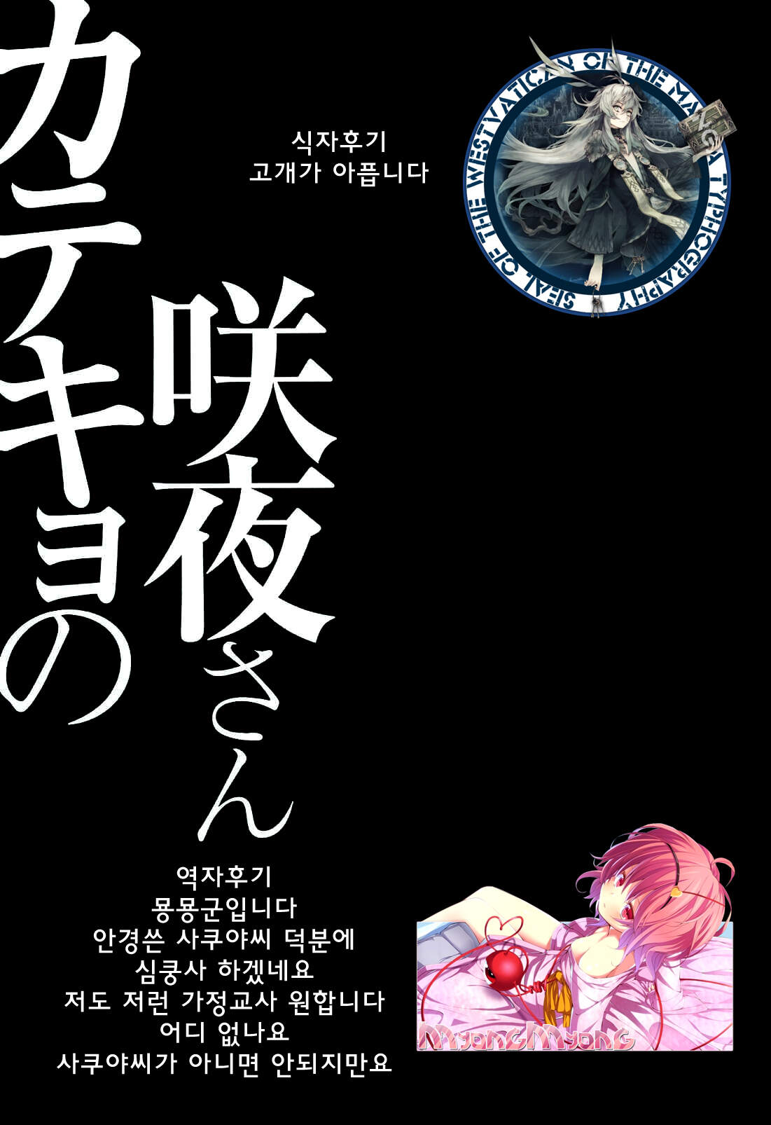 (Kouroumu 10) [Kinokonomi (konomi)] Katekyo no Sakuya-san (Touhou Project) [Korean] [WestVatican]