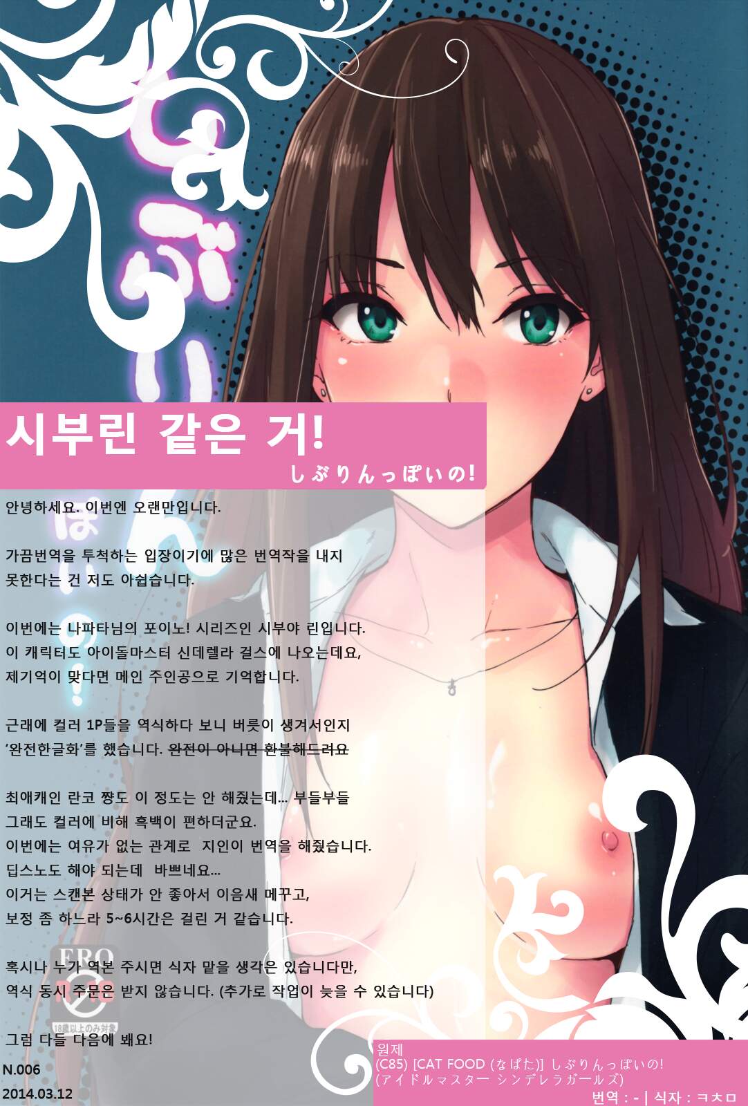 (C85) [Cat FooD (なぱた)] しぶりんっぽいの! (アイドルマスター シンデレラガールズ) [韓国翻訳]