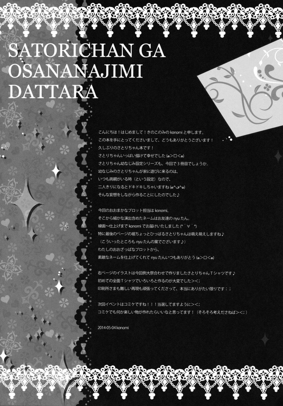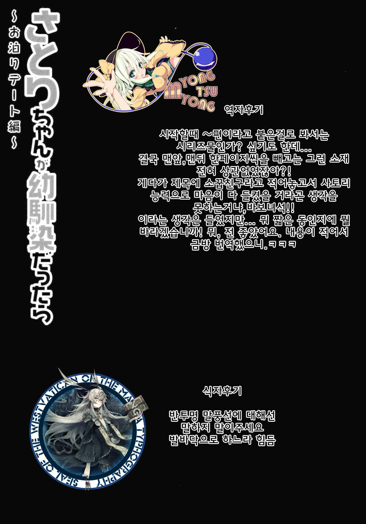 (例大祭11) [きのこのみ (konomi)] さとりちゃんが幼馴染だったら -お泊りデート編- (東方Project) [韓国翻訳]