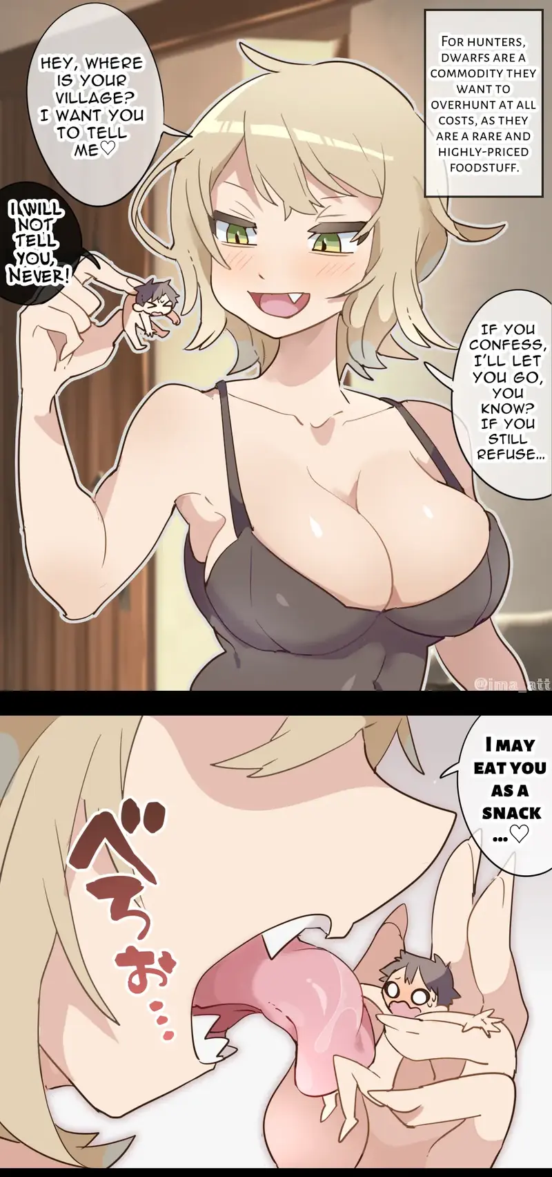 [イマット] おねえさんが小人を尋問して丸呑みしちゃうvore漫画 [英語、日本語]