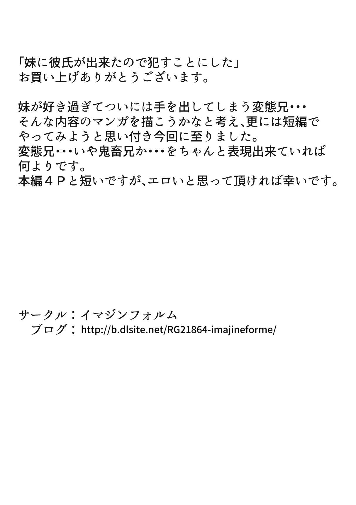 [イマジンフォルム] 妹に彼氏が出来たので犯すことにした