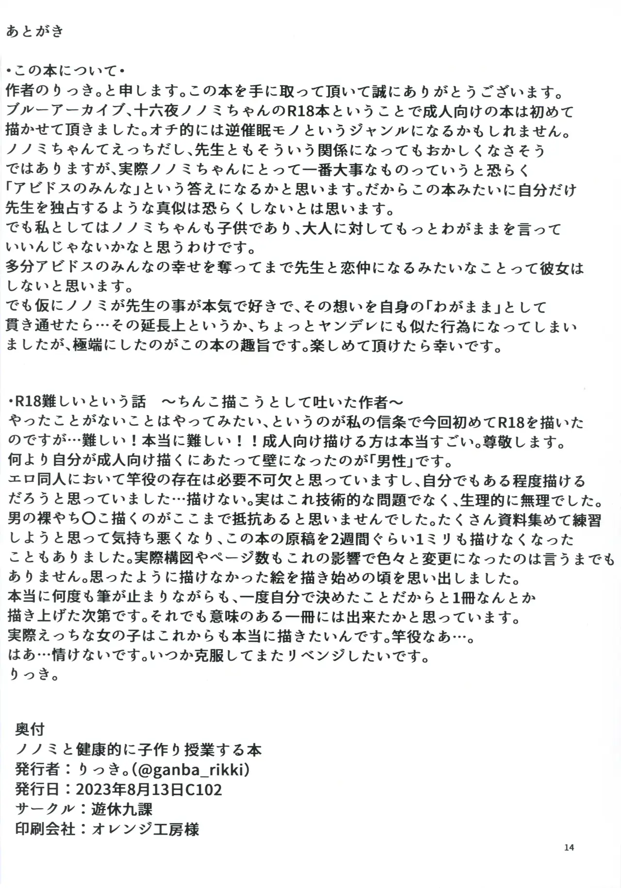 (C102) [遊休九課 (りっき。)] ノノミと健康的に子作り授業する本 (ブルーアーカイブ) [中国翻訳] [ページ欠落]